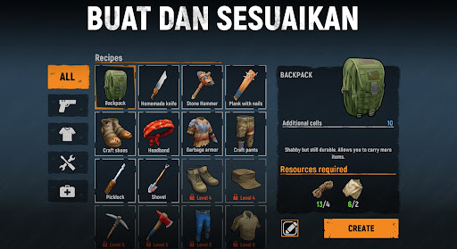 Let ' s Survive adalah permainan survival luar talian yang baru, penuh dengan abu, ketakutan, zombi, mutan, dan samseng. Dunia penembakan, hidup, membina, memasang, dan tindakan di mana hanya orang yang paling kuat bertahan. Cari sumber dan barangan, untuk pelbagai senjata. Bentengi di mana anda tinggal dan mengeluarkan serangan zombie dan bos. Pantau tahap kesihatan, dahaga, lapar, dan penyakit anda. Lengkapkan carian dan sertai puak survival. Selepas tragedi itu bukan tugas yang mudah. Survival RPG Game Simulator adalah carian dan pengumpulan barangan dan sumber yang berterusan, dan pemantauan berterusan penunjuk kehidupan watak (kelaparan, dahaga, kesihatan, tahap radiasi). Jangan biarkan watak anda kelaparan dan terluka untuk masa yang lama! Di samping itu, survival post -apocalyptic juga bahaya digigit oleh zombi, ketika mencari, jadi jangan lupa untuk membawa senjata dan haiwan peliharaan yang mencari barang -barang yang berguna dengan anda atau anda akan mati di gigi neraka makhluk haus darah. Senjata dan perisai untuk menyelamatkan dari musuh, mencari pelbagai barangan survival. Buat zon selamat untuk selamat semasa hari -hari gelap, memasak makanan dengan api, membina tempat perlindungan, barikade dan kubu dan membuat senjata sebanyak mungkin. Dalam proses lulus permainan hidup zombie kiamat, anda akan dapat pergi Melalui jalan cerita dan selesaikan carian yang akan memberi anda sumber tambahan. Sebagai contoh, anda perlu bertahan selama sehari di lokasi tertentu (titik bersyarat z, a, r, dan lain -lain).