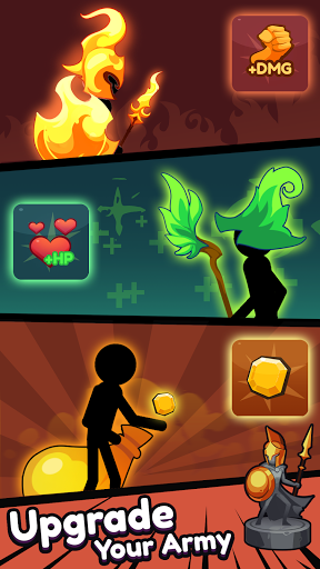 Ini permainan pertempuran Stickman percuma ini membolehkan anda membuat rancangan yang hebat untuk melombong emas, membina unit anda Dan pelajari cara yang paling berkesan untuk mengawal Swordman, Spearmer, Archer, Mage dan Giant. Strategi yang menakjubkan dan penggunaan item yang sesuai akan membantu anda dalam memusnahkan patung musuh dan mengatasi semua cabaran untuk mendapatkan takhta.