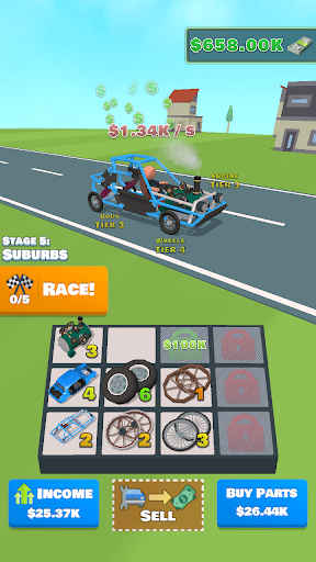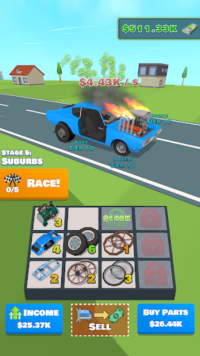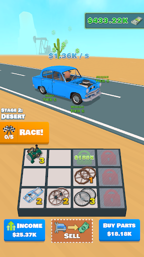 Bina kereta anda dari awal.Ketik ketuk untuk menjana lebih banyak wang.Beli bahagian yang lebih baik, bergabung dengan mereka dan membuat kereta anda lebih cepat.Sertai kaum, pukul pesaing anda, dapatkan lebih banyak wang.