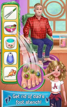 You’ve been planning the birthday party of your dreams with your BFF - a pool party - when there’s a sudden stinky smell. The smell from your daddy’s feet could destroy the party. Get rid of that stinky smell, fast! Take him to the foot doctor, or for a spa day at a foot spa, to a feet salon or a nail salon… do whatever it takes!