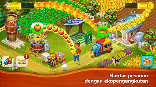 Perbaiki resipi pengeluaran untuk meningkatkan kualiti produk anda. Penuhi pesanan warga jagat anda, berinteraksi dengan jiran anda: tukar barang dan berdagang produk ladang anda.