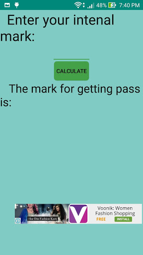 It's got a Pass mark calculator which will give the mark for getting pass in Semester exams for your internal marks.