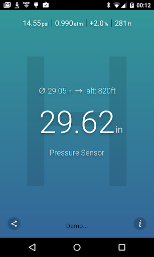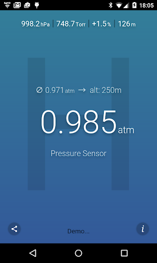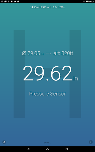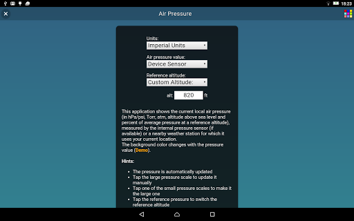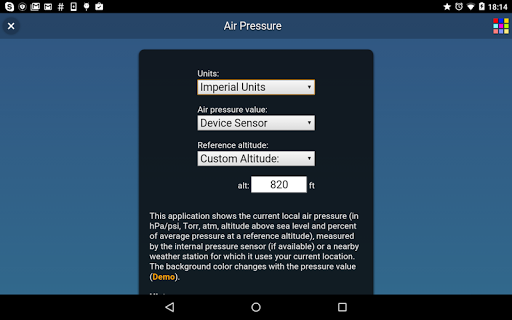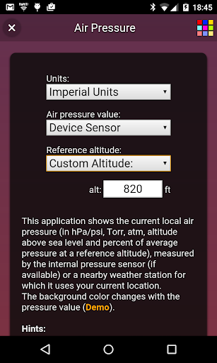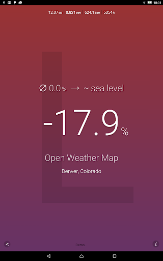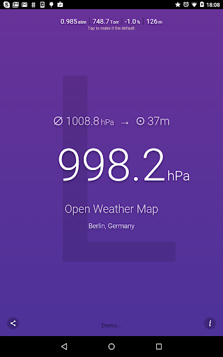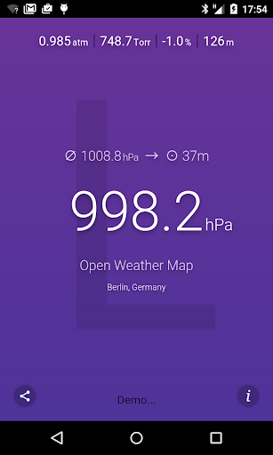 ဤလျှောက်လွှာသည်လက်ရှိလေကြောင်းဖိအား (ရရှိနိုင်ပါက) သို့မဟုတ်သင်၏လက်ရှိတည်နေရာကိုအသုံးပြုသည့်အနီးအနားရှိရာသီဥတုအခြေအနေကိုတိုင်းတာသည်။