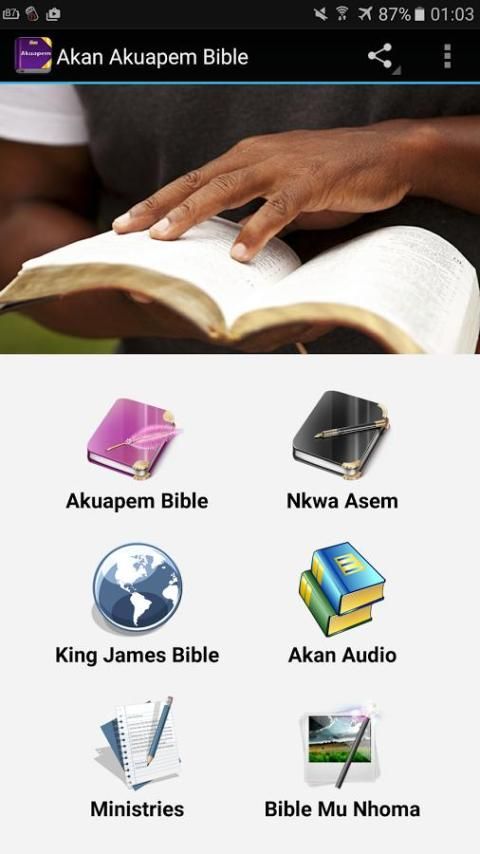 Akan Akuapem Bible give you complete bible in akan language. Also include complete Twi bible ashante and a King James version in english. You can read to the holy bible old or new testament in Nkwa Asem section or to listen to the bible. Along with that we include serons, daily devotionals for women, hymns, prayers and more.
