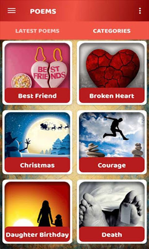 ကဗျာအားလုံးပွင့်လင်းအရင်းအမြစ်များမှဖြစ်ကြသည်။ ကဗျာအားလုံးသည်သင်အလွယ်တကူရှာဖွေနိုင်သည့်အကောင်းဆုံးအမျိုးအစားကဗျာများပါ 0 င်သည့် application တစ်ခုပါ 0 င်သည်။ ။ Facebook, The Facebook, Twitter, Instagram စသည်တို့ကိုမျှဝေရန်သင်၏ချစ်ခြင်းမေတ္တာကိုအလွယ်တကူဝေမျှရန်အခမဲ့ပေးသောကဗျာများကိုမက်ဆေ့ခ်ျများနှင့်အခြားသူများအားအခမဲ့ပေးသောကဗျာများကိုပေးပို့နိုင်သည်။ သင်၏ကျောင်းသား၏လေ့လာမှုကို Poems အခမဲ့သင်ယူခြင်းကိုပိုမိုထိရောက်စွာပြုလုပ်ပါစေ။ Poems Free 5 Star Mobile app သည်သင်၏စစ်မှန်သောခံစားချက်များကိုဆိုလိုသည်, > ကဗျာများအားလုံးကိုအောက်ပါကဏ္ sections များနှင့်အမျိုးအစားများကိုခွဲခြားထားသည်။