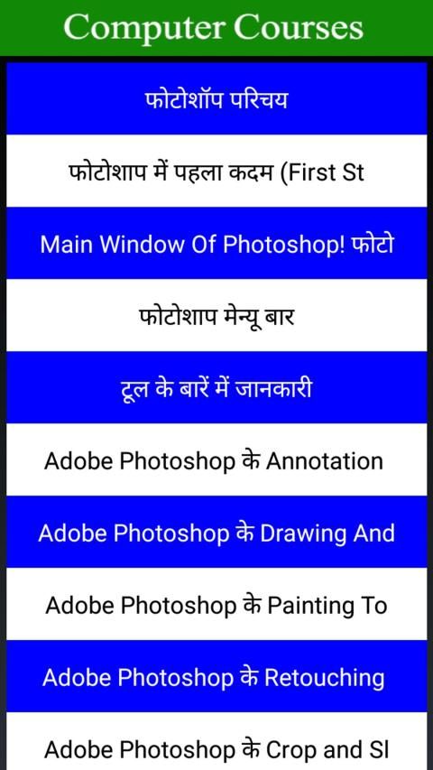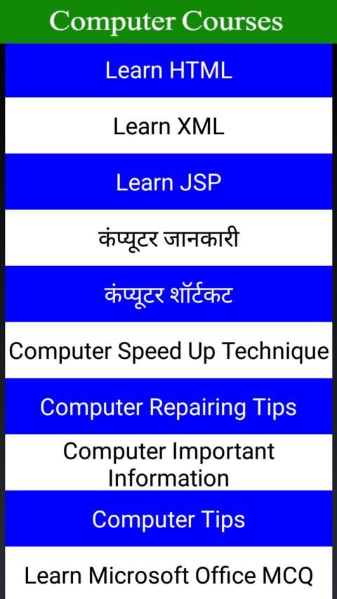 All in One Computer Courses in Hindi App has list of topics such as: