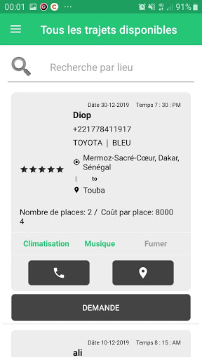 • Recherchez sur Allo Dakar App votre trajet