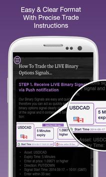 Our Mobile Binary Signals are provided in an easy and clear format. We notify you in REAL Time and tell you what to trade with right now. You simply go to your binary options trading account and execute the trade on your mobile or desktop platform.