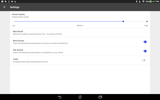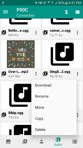 Bluetooth Browse is a remote file manager, user can use Bluetooth Browse to browse all the file contents in a remote device storage, user can download any file from the remote device. User can also see previews of all files they wish to download,file preview feature is very useful especially when user is trying to download a picture,video, or an audio from the remote device, user can use the preview feature to know which image or video they want to download before downloading it. When the preview feature is used with audio download, user will be able to play the audio before downloading it. Bluetooth Browse is extremely fast capable of downloading large files in short period of time. Bluetooth Browse also takes power consumption into consideration, when running Bluetooth Browse if the user leaves the app and launches another app or go to the home screen or receives a call, Bluetooth Browse will pause all ongoing operations to reduce the rate of power consumption, Bluetooth Browse will resume operations once the user returns.