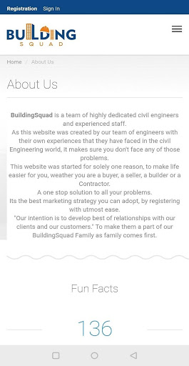 As Building Squad was created by our team of engineers with their own experiences that they have faced in the civil Engineering world, it make sure you don't face any of those problems. This App was started for solely one reason, to , make life easier for you, whether you are a buyer, a seller, a builder, or a contractor. A one stop solution to all your construction related problems. It’s the best online B2B, B2C, C2B, C2C marketing strategy you can adopt by registering with utmost ease.