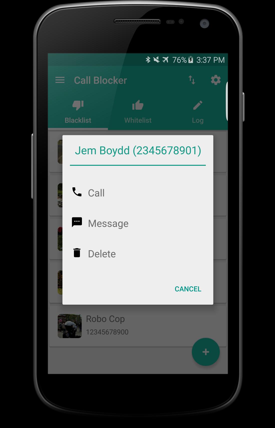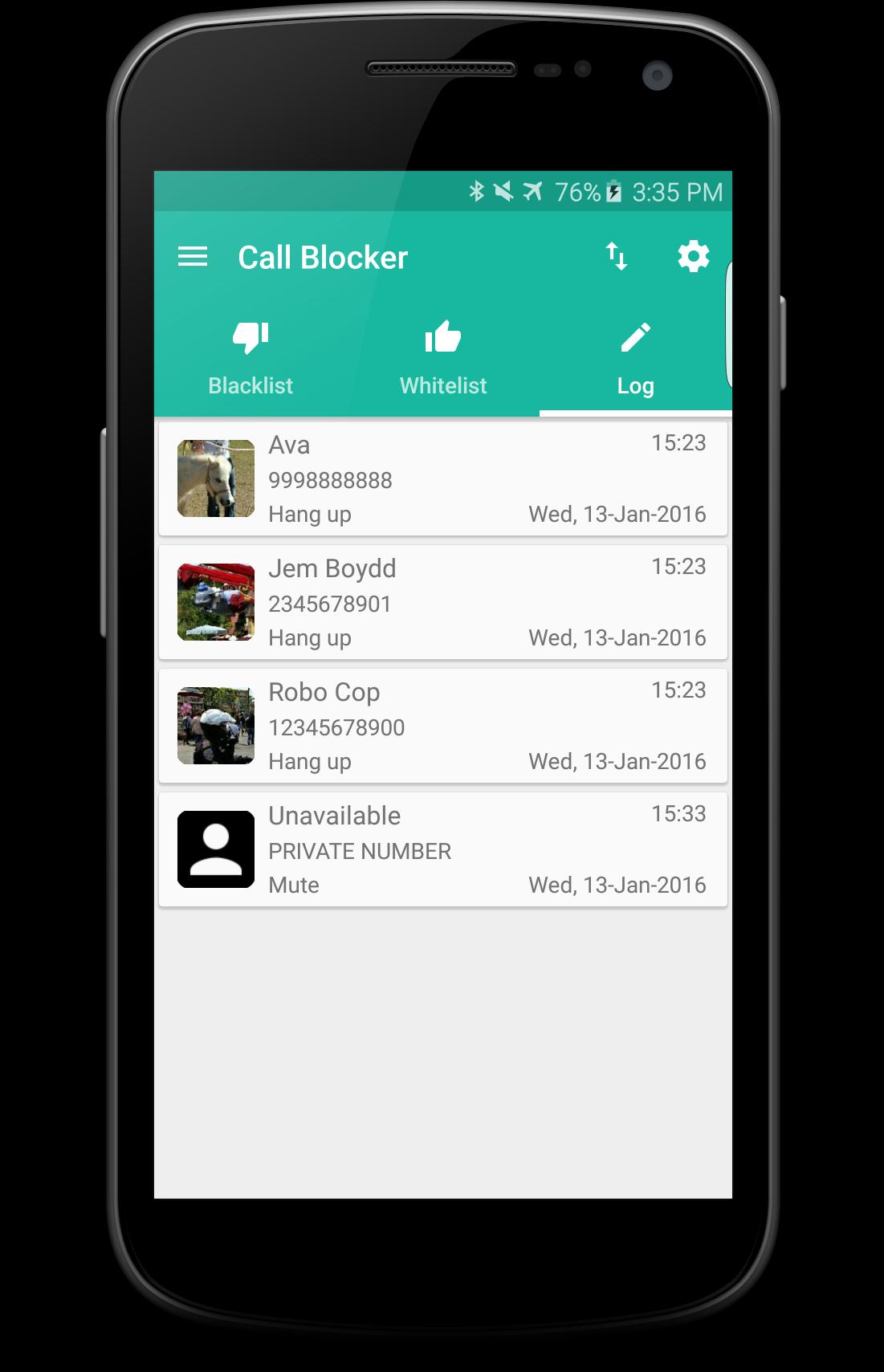 Annoying and unwanted phone calls? Let this call blocker app hang up or silence them automatically before your phone even starts ringing. Add the undesired numbers to the blacklist using the custom(manually) dialog or directly from you contacts or recent calls.