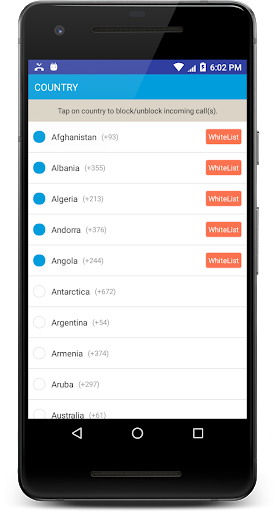 - Block the countries by selecting them, User can whitelist numbers to get calls from blocked countries.