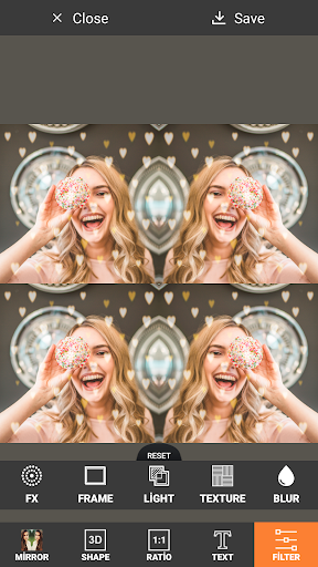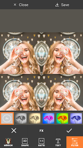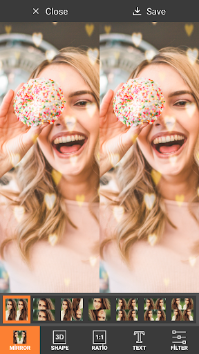 You can create many reflection styles in your photos thanks to the Selfie Editor with Mirror Effect.
