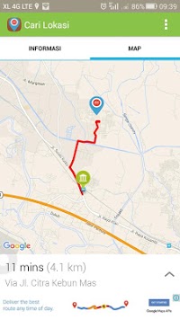 Cari Lokasi juga dapat digunakan sebagai alat navigasi dimana anda dapat menemukan jalan di kota yang belum pernah anda kunjungi.