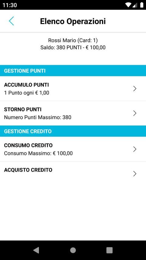 - Gestione delle movimentazioni sulle Card: carico e scarico punti, crediti, richiesta premi, etc.