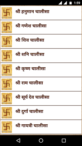 1.Shri Hanuman Chalisa 2.Shri Ganesh Chalisa 3.Shri Shiv Chalisa 4.Shani Chalisa and many more..