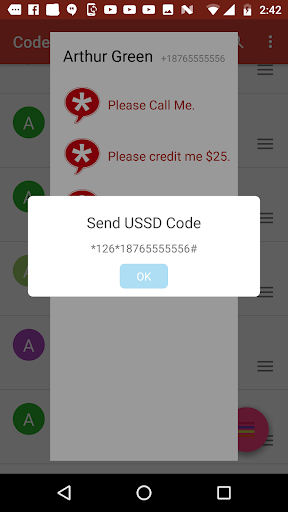 CodeApp also allows you to easily send one touch codes to such as (*120#, *140#). These short codes are known as USSD codes.