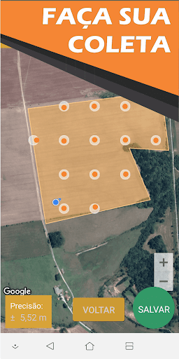 Construa as delimitações do campo a ser coletado através do próprio aplicativo, selecionando e arrastando os pontos para georreferenciar os limites corretamente.