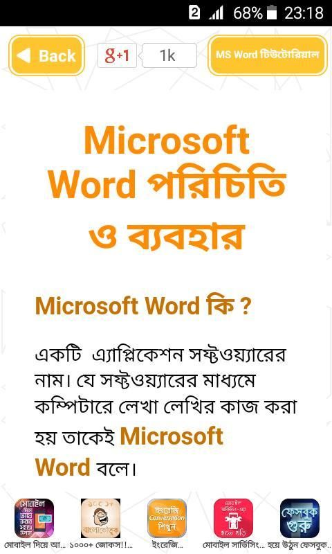 This app comprises various topics of computer course in bangla along with tutorial except computer programming bangla. Key features included: -