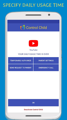 - THIS APP USES the "ACCESSIBILITY_SERVICE" PERMISSION. This permission is required to prevent the removal of the Control Child application from the device.