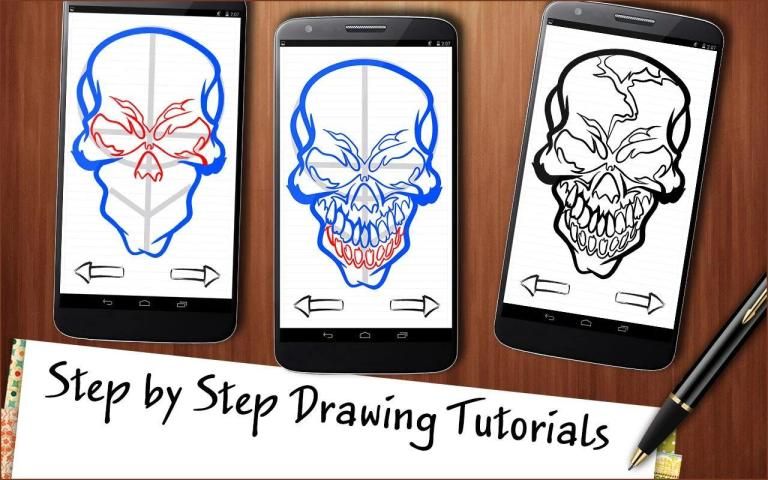 You want to have fun and useful time spending? Then we have exactly what you need! The new mobile app for drawing Skulls Tattoo will teach you how to draw a simple and confident using your mobile device. We offer you access to tattoo skech, which will be available to you when you download the app! Choosing your favorite tattoo art, you get step by step drawing lessons that will teach you how to draw tattoo. Lesson of drawing contains about 10 "steps" and each of them leads to a successful conclusion of your drawing! Tattoo for men, henna tattoo and the other wall art secrets easily and confidently, step by step!