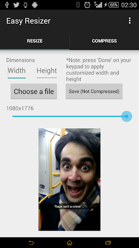 * Compressing the image (or resized image) with a simple slider