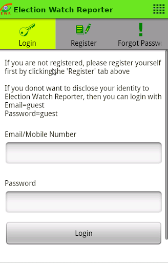 ရွေးကောက်ပွဲစောင့်ကြည့်ရေးသတင်းထောက် (ERTR) သည်ရွေးကောက်ပွဲဆိုင်ရာဆိုင်ရာတိုင်ကြားချက်များကိုအစီရင်ခံရန်အက်ပလီကေးရှင်းတစ်ခုဖြစ်သည်။ နိုင်ငံသားများသည်ရွေးကောက်ပွဲဆိုင်ရာစည်းရုံးလှုံ့ဆော်ရေးများအတွင်းရွေးကောက်ပွဲဆိုင်ရာဥပဒေသို့မဟုတ်ကိုယ်စားလှယ်လောင်းများမှကိုယ်စားလှယ်လောင်းများမှကိုယ်စားလှယ်လောင်းများအားချိုးဖောက်ခြင်းနှင့် ပတ်သက်. တိုင်ကြားမှုများကိုတိုင်ကြားနိုင်သည်။