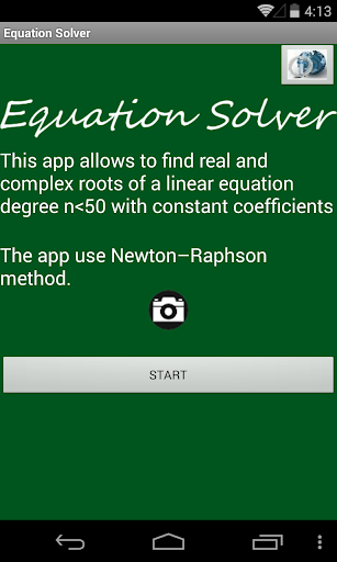This app allows to find real and complex roots of a linear equation of degree less than or equal to 50 and constant coefficients using the Newton–Raphson method.
