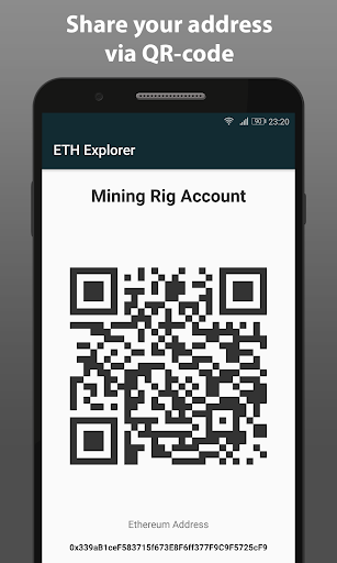 Etheume Block Explorer သည်သင်၏ Etherherum လိပ်စာကို QR-code မှတစ်ဆင့်အလွယ်တကူမျှဝေရန်ခွင့်ပြုသည်။သို့မဟုတ် အကယ်. သင်သည်၎င်းကိုစာသားဖြင့်ပေးပို့ရန်လိုအပ်ပါကသင်၏ clipboard သို့ကူးယူရန် Wallet ၏ options ခလုတ်ကိုနှိပ်ပါ။