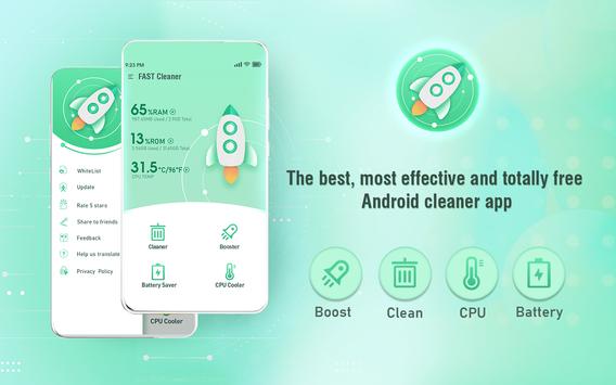 Fast Cleaner is a phone cleaning app that is designed to make your Android cleaner, faster and safer. It's a light and powerful junk cleaner, phone booster, battery optimizer and CPU cooler for your device.