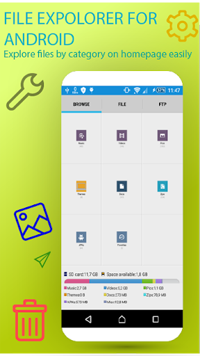 provides full-featured file management like copy, move, paste, rename, delete, share, encrypt for phone memory and SD card. Explore files and folder easily by category and search. Encrypt files like images, videos, documents, music to avoid unauthorized access. Nobody can explore your encrypted files except yourself. Analyze storage usage, clean junk to save your phone space.