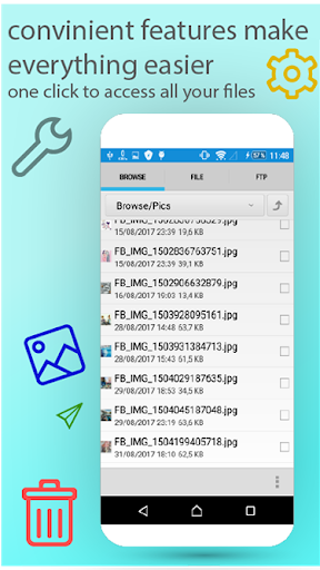 Manage your files with copy, move, paste, rename, delete, share, encrypt, detail both in internal memory and SD card.