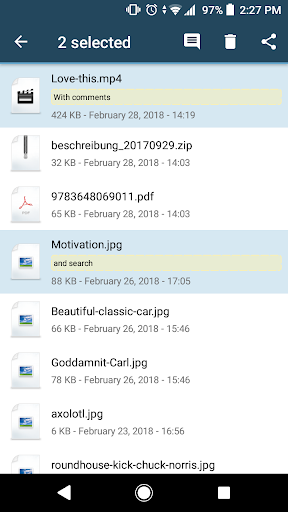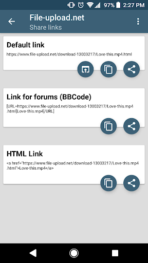 Perfect to share files up to 1000 MB wherever you are. Upload once and re-use the links several times, saving a lot of traffic. Create a library of linkable files on your smartphone.