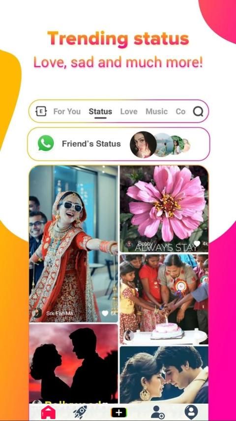 You can make friends and share regional videos with people who speak in your own language. Hindi language users can now download Hindi videos, Hindi love video songs, Hindi shayari, and Hindi WhatsApp status videos and similarly, there are Tamil WhatsApp videos status, Telugu WhatsApp video status, Kannada WhatsApp video status, Marathi WhatsApp video status, Gujarati WhatsApp video status, Bengali WhatsApp status, Urdu WhatsApp video status You can download videos in just one click.
