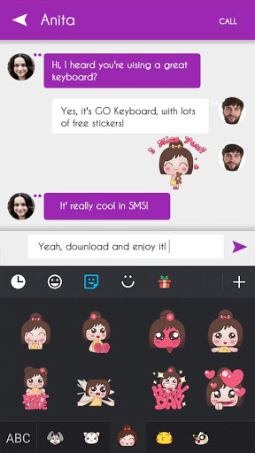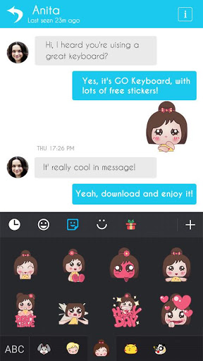 GO GO G Gey Keyboard (10000 ကျော် emoji, emoticons နှင့် smoticy faces တို့ဖြင့်) တပ်ဆင်ထားသည်။