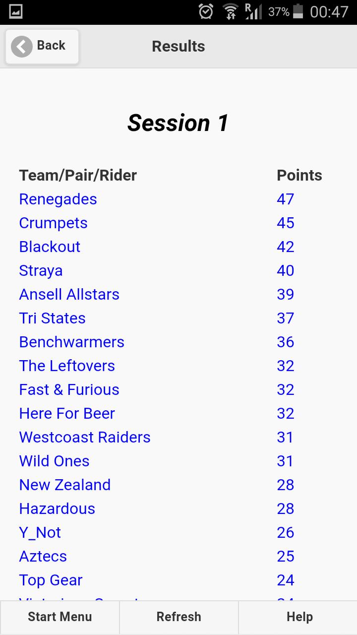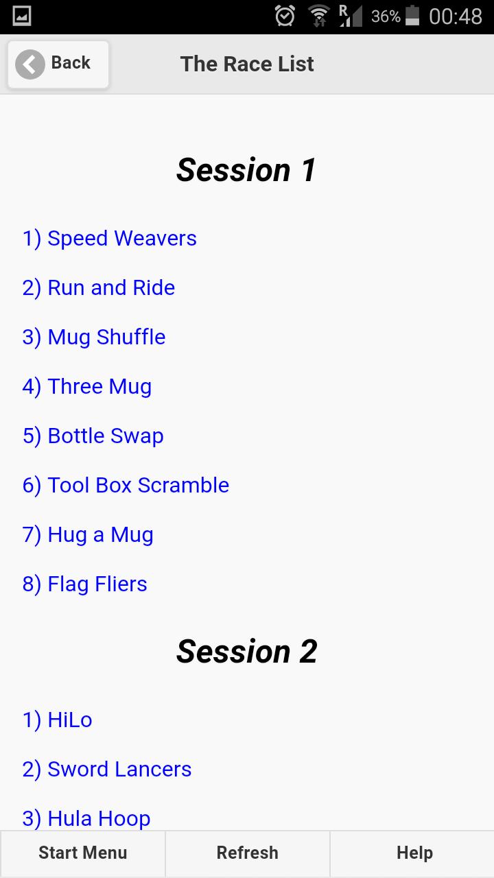 Currently you can view the race list, the draw and the summary results from the sessions and the final.