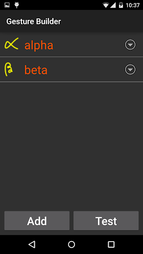 A handy tool for developers to create, save, test and share hand drawn gestures. Using Gesture Builder on Android simulator is very very painful, this app saves you from that trouble... Gesture file is stored on your device and you can use it for other apps..