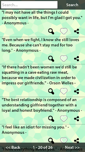 ဤသည်မှာသင်၏ရည်းစားနှင့်ရည်းစားအတွက်ကိုးကားအမြောက်အများကိုသိုလှောင်ထားသော app တစ်ခုဖြစ်သည်။ ဒါကြောင့်သင်သူ့ကိုသင်မည်မျှချစ်ကြောင်းပြောပြရန်ဤကိုးကားချက်ကိုသင်၏ရည်းစားသို့မဟုတ်ရည်းစားထံသို့ပေးပို့နိုင်သည်။ ငါအချိန်မီမက်ဆေ့ခ်ျအသစ်များထည့်သွင်းဆက်လက်ပါလိမ့်မယ်။ ဒီတော့အနာဂတ်မှာဒီဟာကမင်းကိုချစ်တဲ့သူတိုင်းကိုပြောရမယ်, စိတ်မကောင်းပါဘူး။ မင်းရည်းစားနဲ့ရည်းစားအတွက်ချိုမြိန်ကိုးကားအများကြီးရှိပါတယ်။