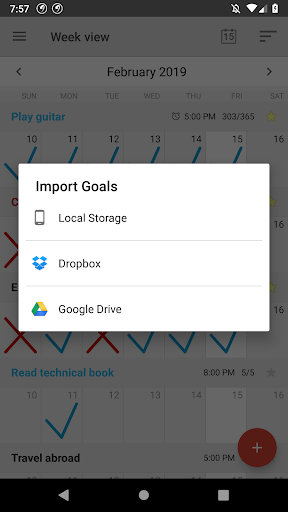 Dropbox သို့ပို့ကုန်နှင့် / သို့မဟုတ်ဒေသတွင်းသိုလှောင်မှု။ သင်၏အလေ့အထများ / ပန်းတိုင်များကိုသင်ဘယ်တော့မှမဆုံးရှုံးပါ။ နေ့စဉ်သိုလှောင်မှုသို့နေ့စဉ်အလိုအလျောက်အရန်ကူးခြင်း။ ပြီးခဲ့သည့်အပတ်ကမည်သည့်နေ့ရက်ကိုမဆိုရွေးချယ်ရန်ပြက္ခဒိန်ကိုသုံးပါ။ မျက်နှာပြင်တစ်ခုပေါ်တွင်အလေ့အထများ / ပန်းတိုင်များအားလုံးကိုမှတ်တမ်းတင်ပါ။