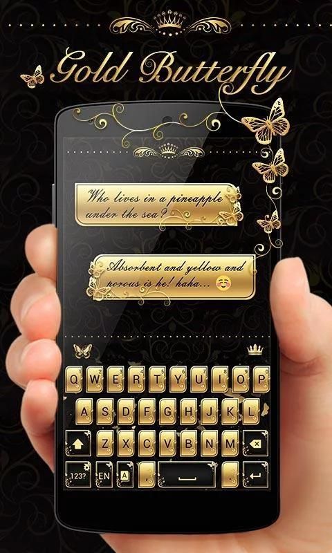 The Gold Butterfly GO Keyboard Theme for GO Keyboard has a gold butterfly keyboard wallpaper with black background.This amazing Gold Butterfly theme is specially designed for people who loves gold butterfly and black theme. This Gold Butterfly Theme for GO Keyboard is the one of the most popular theme in this year. Beautify your android home with this Gold Butterfly theme for GO Keyboard now! Customize your mobile phone with shining style to meet your later 2017.