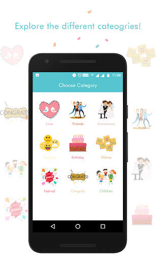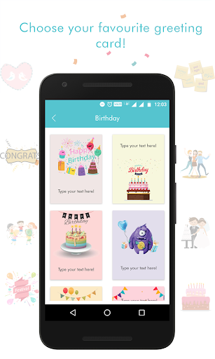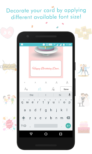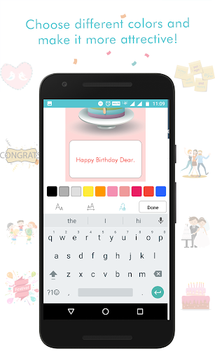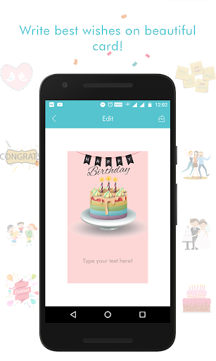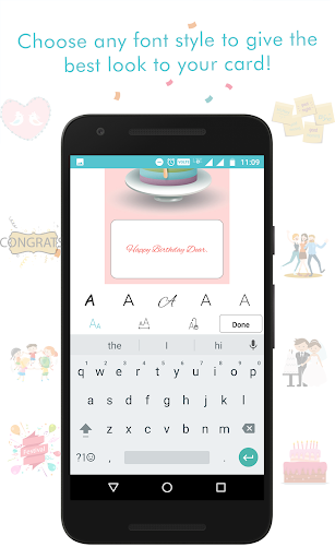 ဤလျှောက်လွှာသည်အသုံးပြုသူအားသူတို့၏မိသားစုနှင့်သူငယ်ချင်းများထံသတင်းစကားမျှဝေရန်ကူညီသည်။မျိုးစုံအမျိုးအစားများကိုထူးခြားသောဒီဇိုင်းအယူအဆနှင့်အတူပါဝင်သည်။အသုံးပြုသူသည်ကဒ်ကိုပေးထားသောရွေးချယ်စရာများမှကဒ်ကိုရွေးပြီးမက်ဆေ့ခ်ျ, ဖောင့်အရောင်အရွယ်အစားနှင့်ဖောင့်မိသားစုကိုတည်းဖြတ်နိုင်သည်။အသုံးပြုသူသည် edited Image ကိုနောက်ပိုင်းတွင်ပြခန်းတွင်အသုံးပြုသည်။တစ်ခုမှာ, ဤ application သည်သင်၏ကိုယ်ပိုင်နှုတ်ခွန်းဆက်ကဒ်ထုတ်လုပ်သူဖြစ်ပြီးသင်က၎င်းကိုသင်နှစ်သက်လိမ့်မည်ဟုကျွန်ုပ်တို့သေချာသည်။