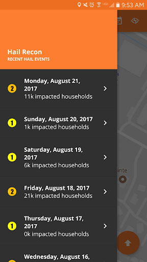 - Radar accurate hail swaths allow you to pinpoint where the hail fell in ten highly accurate levels, ranging from ½” to over 3” hail in ¼” increments.