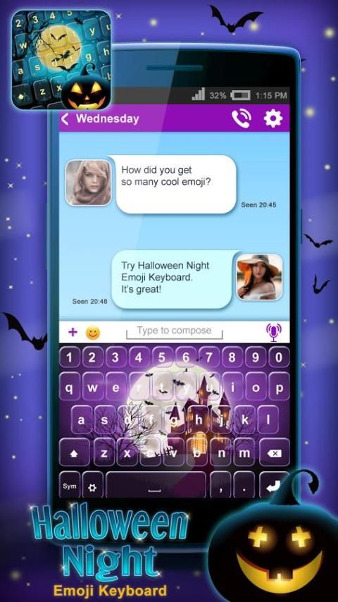Create custom keyboard layout and let your phone stand out in the scariest trick or treat night! Pick up “keyboard themes” free of charge and have the coolest keyboard skins. You'll appreciate this emoji keyboard with amazing keypad themes for Halloween night. Change keyboard layout in a matter of seconds and have fun typing and sending text messages using these scary Halloween pictures as your keyboard background images! Check out one of the “best keyboards” with horror theme, free ghost themes, pictures of flying witches, haunted house pictures and many other scary images! Choose our Halloween Night Emoji Keyboard for your smartphone or tablet with the best horror keyboard themes!
