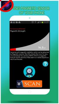 To use hidden spy camera detector you phone should have a magnetic sensor installed. The magnetic sensor detects magnetic fields and magnetic radiations emitted from hidden camera and other electronic devices such TV, AC, Remote. For Scanning hidden cameras magnetic sensor is required.