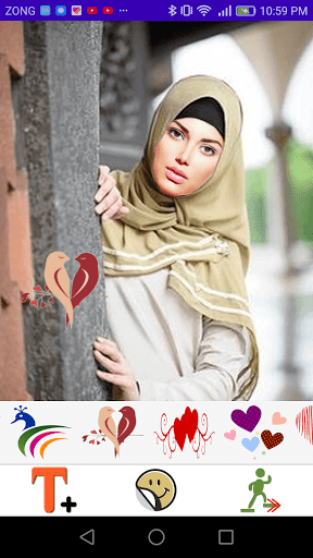 Here you can add any text on your edited picture and paste a sticker, you can choose from a list of stickers.