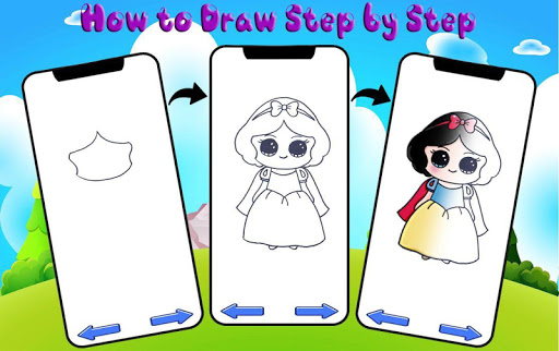 How to draw cute princess is fun-packed one that you will certainly enjoy. Wide categories are there for learning easy drawing like Fish, Draw Little Princess, Draw Chubby Princess, Nail Art, chubby princess, Super Heroes, Fruits, Butterfly, Dress, Birds, Hairstyle, Anime Eyes, etc. Under each categories you will get to learn multiple drawing figures by following different drawing lessons. Tricks to learn to draw cute princess step by step will be easy with this how to draw easy application.