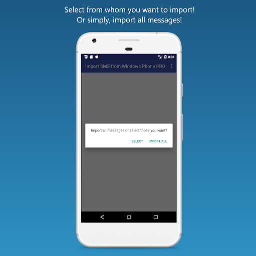 Import SMS from Windows Phone: import your SMS messages from Windows Phone to your Android phone. The SMS backup from Windows Phone is transferred into your Android messaging storage very easily!