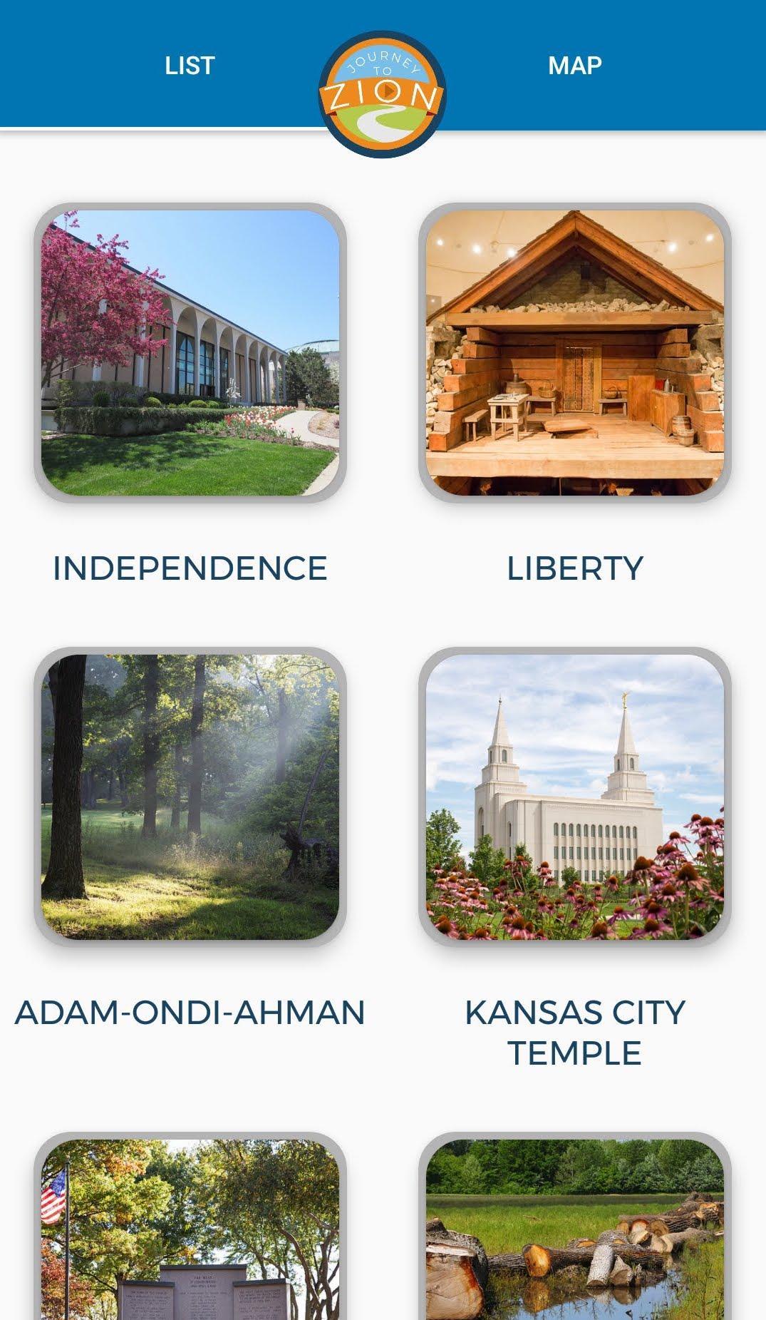 Church history locations include Liberty, Independence, Adam-ondi-Ahman, Richmond, Far West, Hawn’s Mill and the Kansas City Temple.