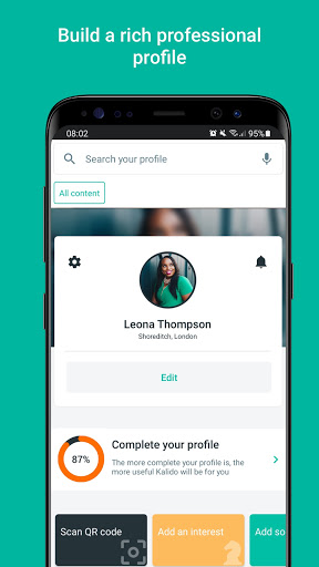 သည်ကြီးမားသောအခွင့်အလမ်းများနှင့်ဆက်သွယ်မှုများကိုလွယ်ကူစွာရှာဖွေရန်သင်၏ကျွမ်းကျင်မှုများ, စိတ်ဝင်စားမှုများ, CV, CV, လူမှုရေးဆိုင်ရာကိုယ်ရေးရာဇဝင်များနှင့်လိုင်းများကိုသင်၏ Kalido ပရိုဖိုင်းသို့လူတို့အားပိုမိုကောင်းမွန်သောသိစေရန်ကူညီရန်။