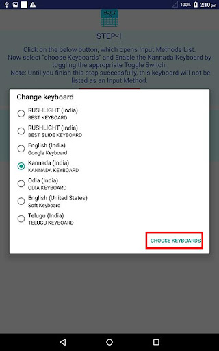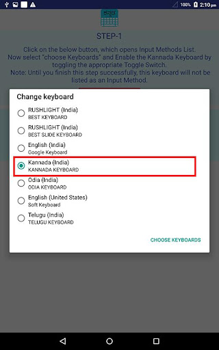 4. Select "Kannada Keyboard" from "Choose Input Method" available on the Notification bar.